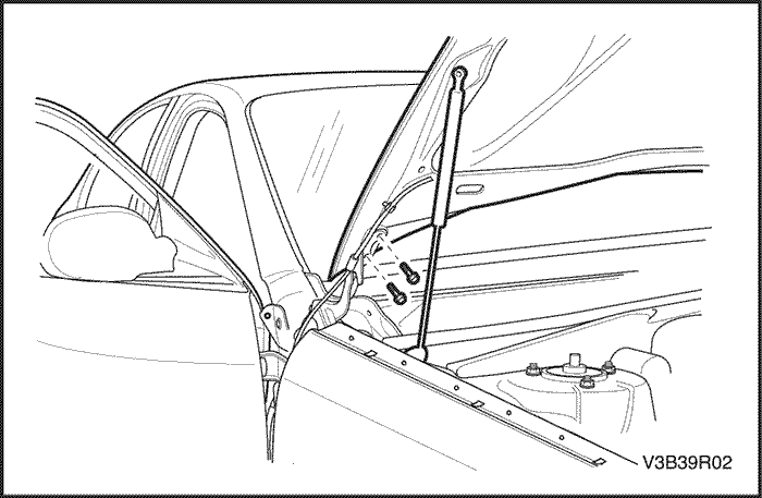 4. Снять стойки капота. См. "Стойки капота" в этом разделе.