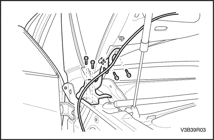 Затянуть винт ручки открытия капота с усилием 2,5 Н•м (22 фунт-дюйм).