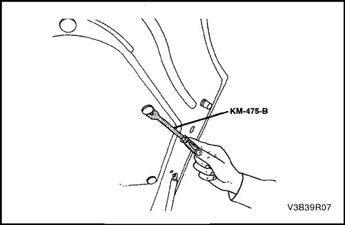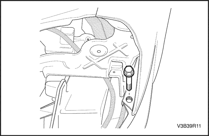 Затянуть передние болты, крепящие облицовку к крылу, с усилием 2,5 Н•м (22 фунт-дюйма).