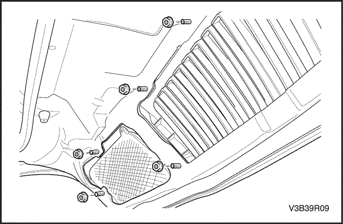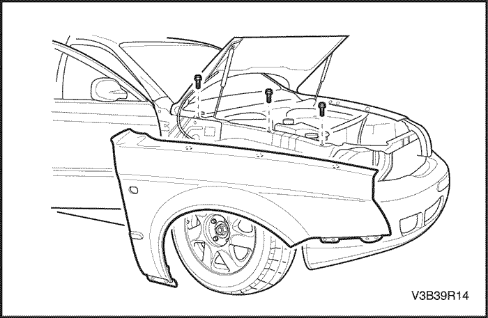 3. Снять передний грязезащитный щиток. См. раздел 9M, «Внешняя отделка».