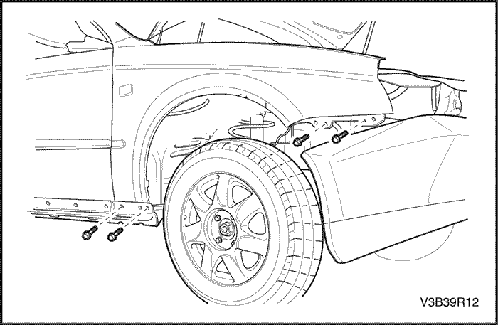Затянуть винты брызговика передней колесной арки с усилием 2 Н•м (18 фунт-дюймов).