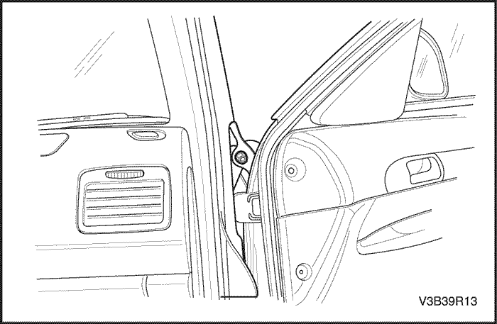 7. Снять молдинг панели порога. См. раздел 9M, «Внешняя отделка».