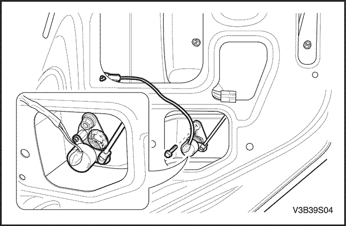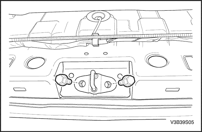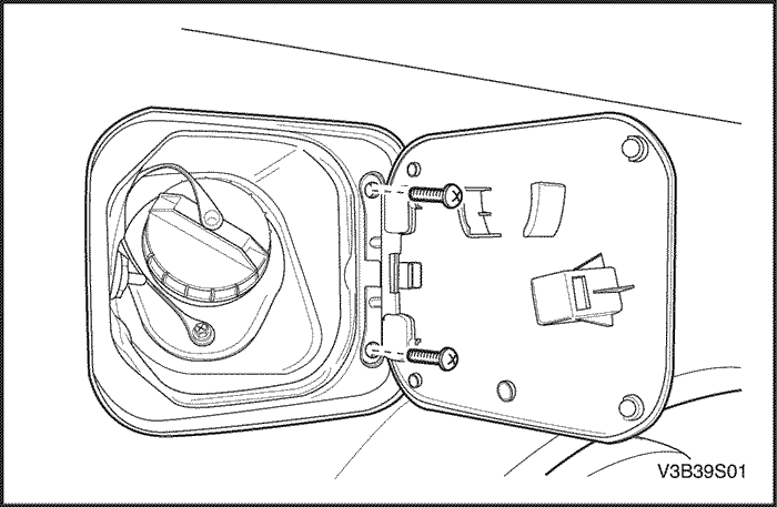 Затянуть винт крышки дистанционной ручки троса крышки наливной горловины с усилием 3 Н•м (27 фунт-дюймов).