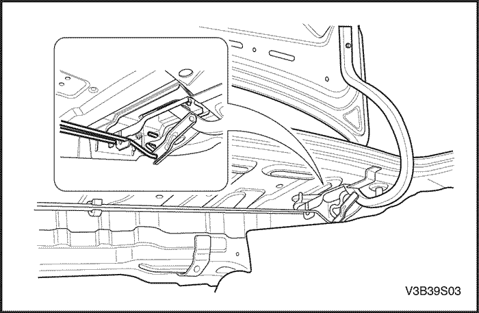 2. Снять панели обивки колесной арки в багажнике и заднюю панель обивки багажника. См. Раздел 9G, Облицовка салона.