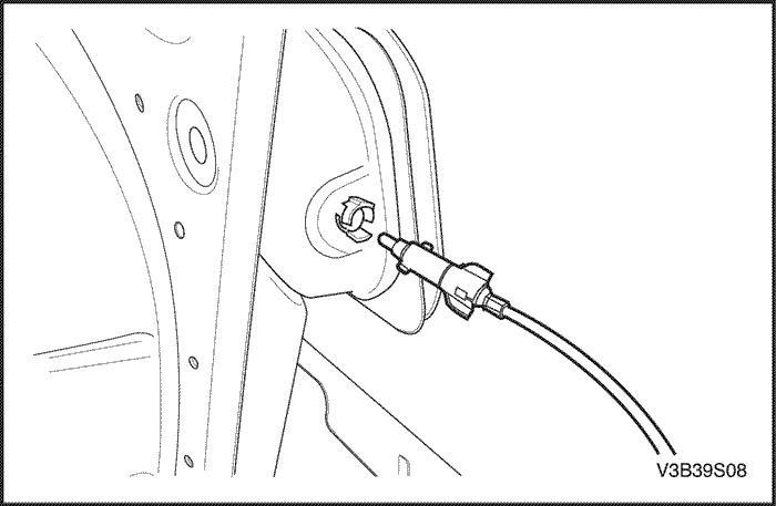 5. Отсоединить трос привода замка от фиксатора замка.