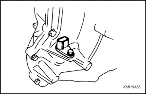 5. Демонтировать крепежный болт датчика температуры трансмиссионного масла.
