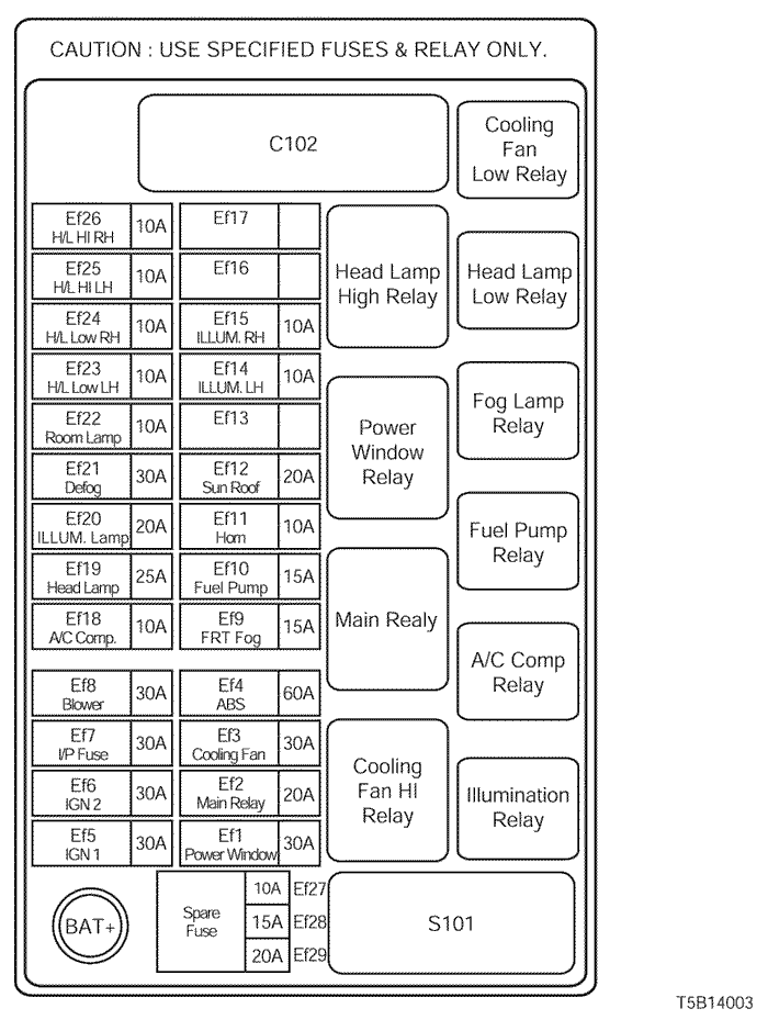 1) position of relay and fuse