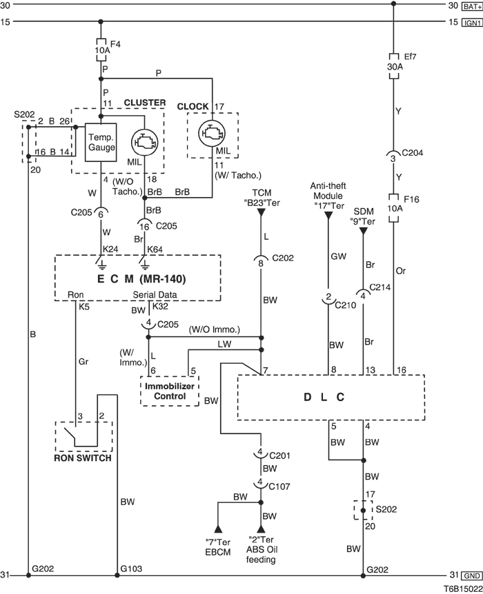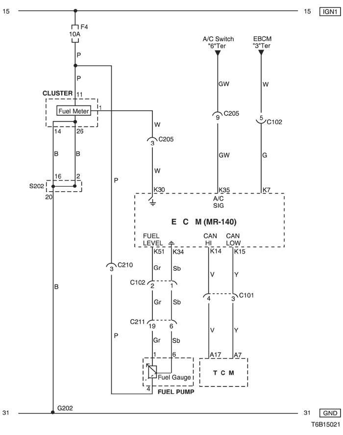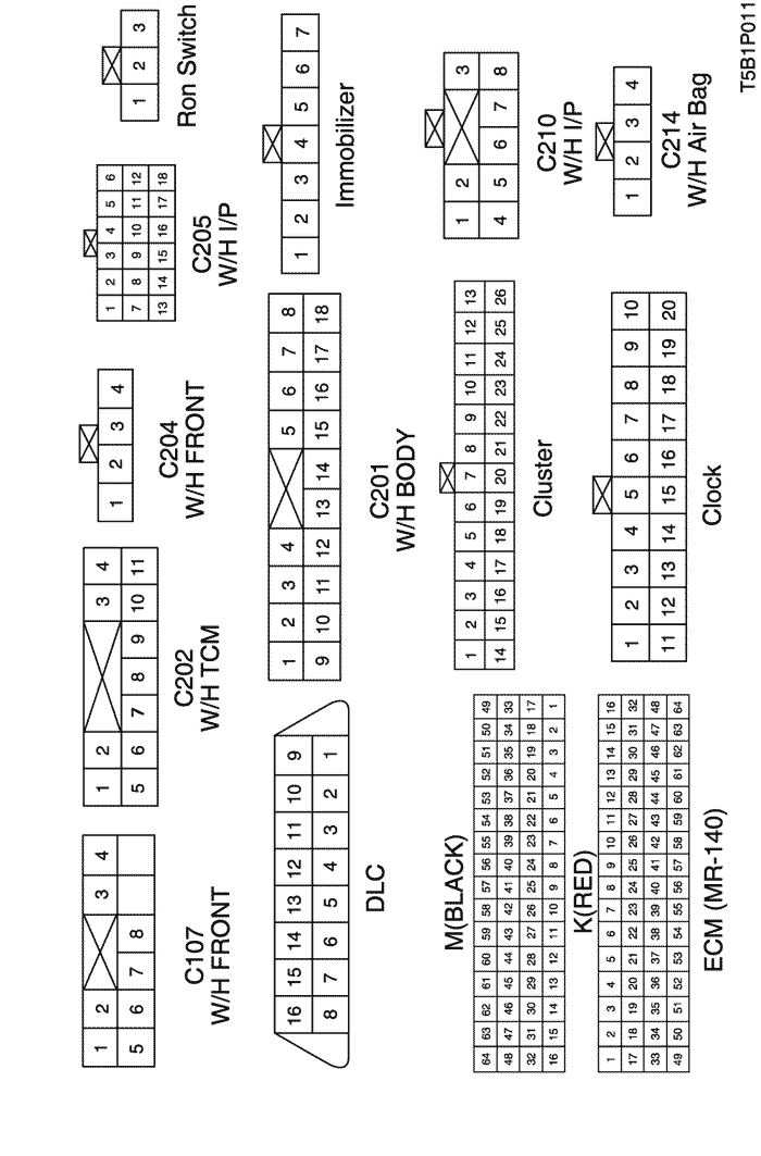 9) cluster, fuel pump & tcm circuit