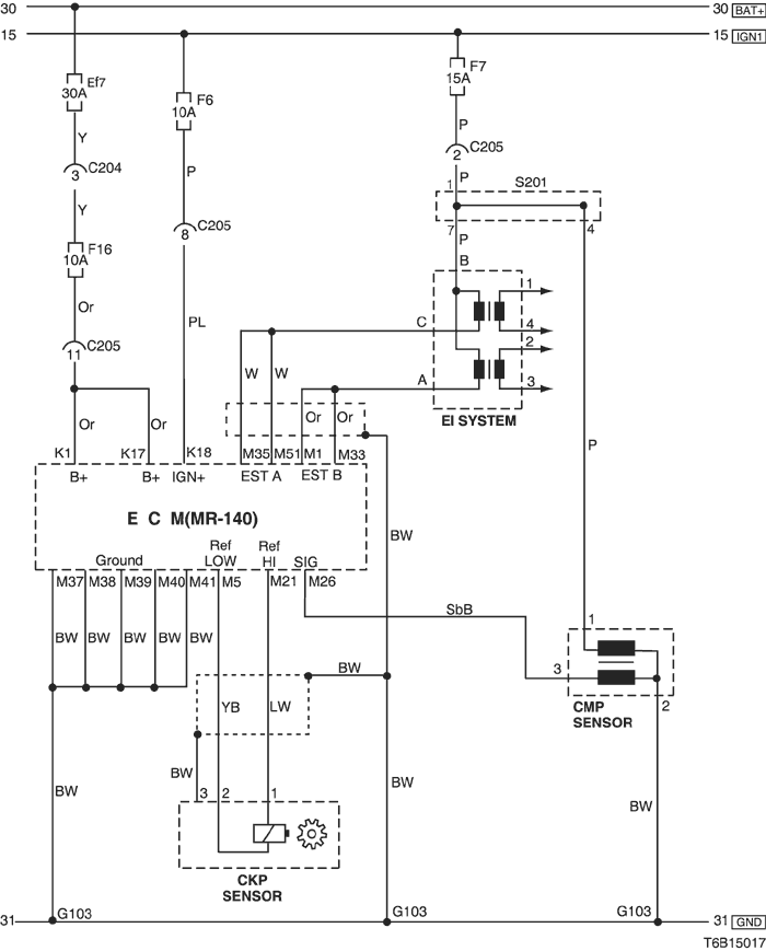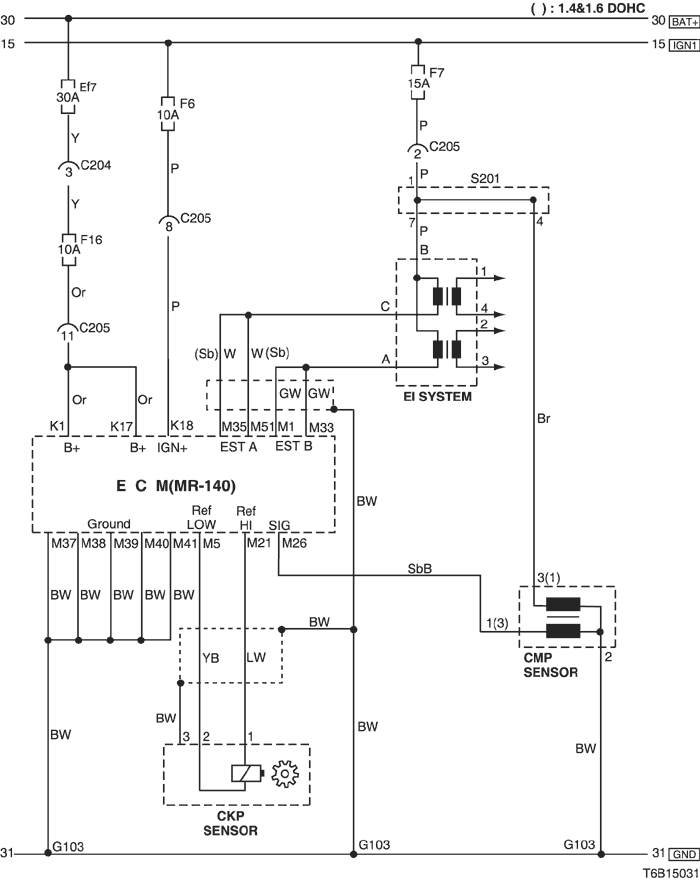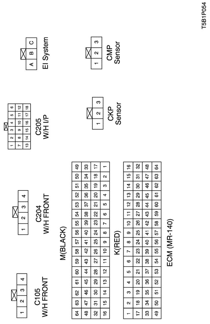 1) battery power supply, ground, ei system, ckp sensor & cmp sensor circuit : except euro iv