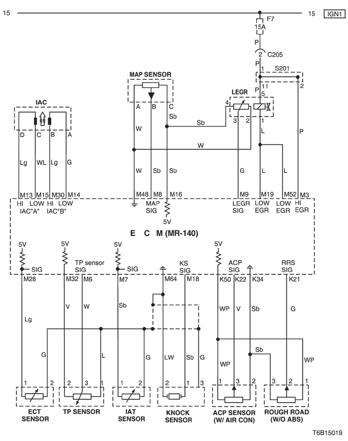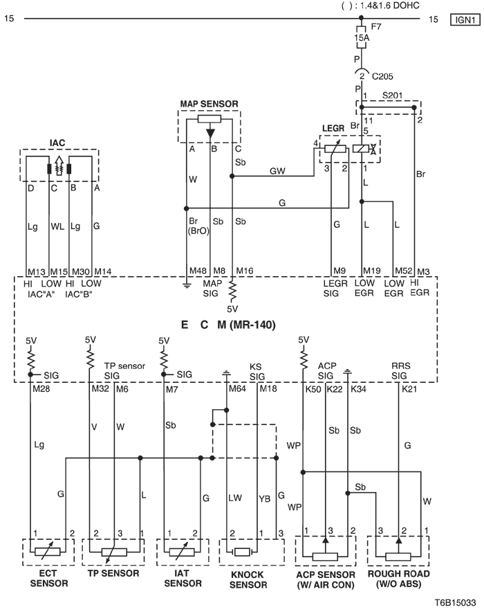 5) iac, sensor (map, ect, tp, knock, acp), legr & rough road sensor circuit : except euro iv