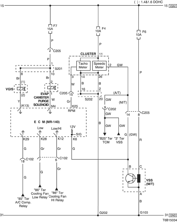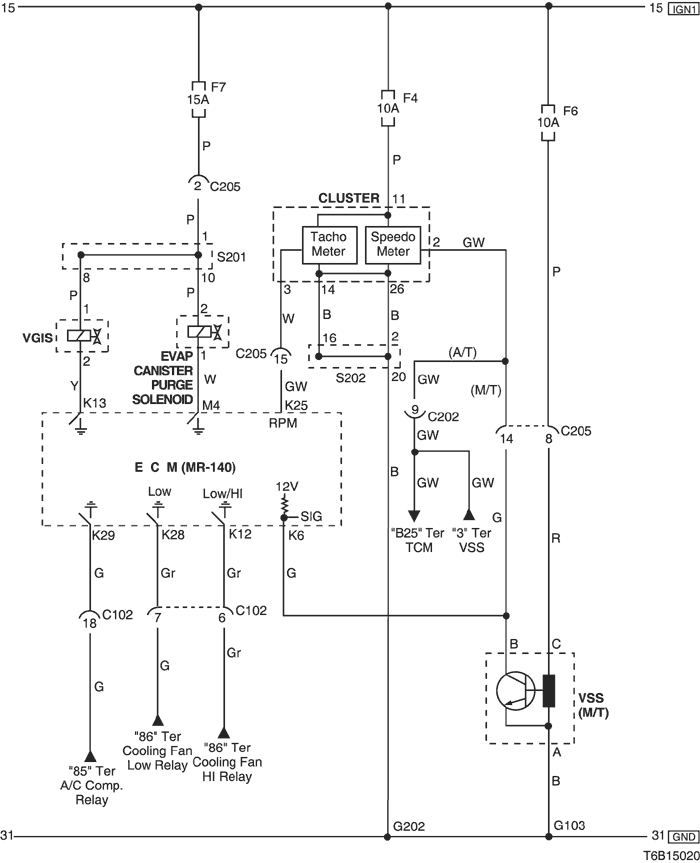 7) evap canister purge solenoid, cluster & vss circuit : except euro iv