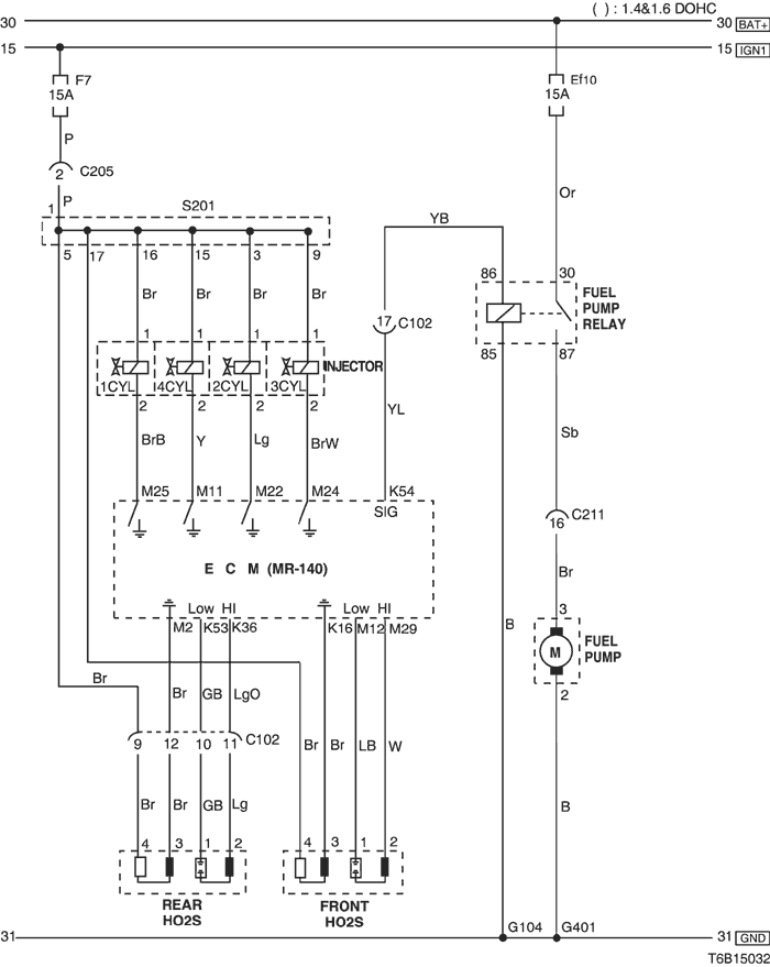 4) fuel pump, injector & o2 sensor circuit : euro iv