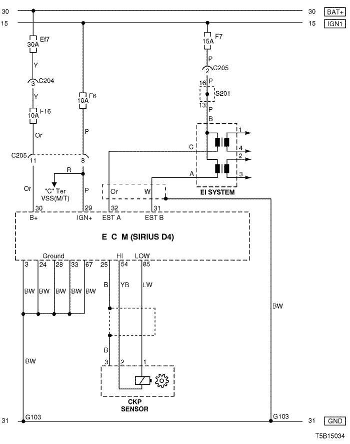 1) battery power supply, ground, ei system & ckp sensor circuit