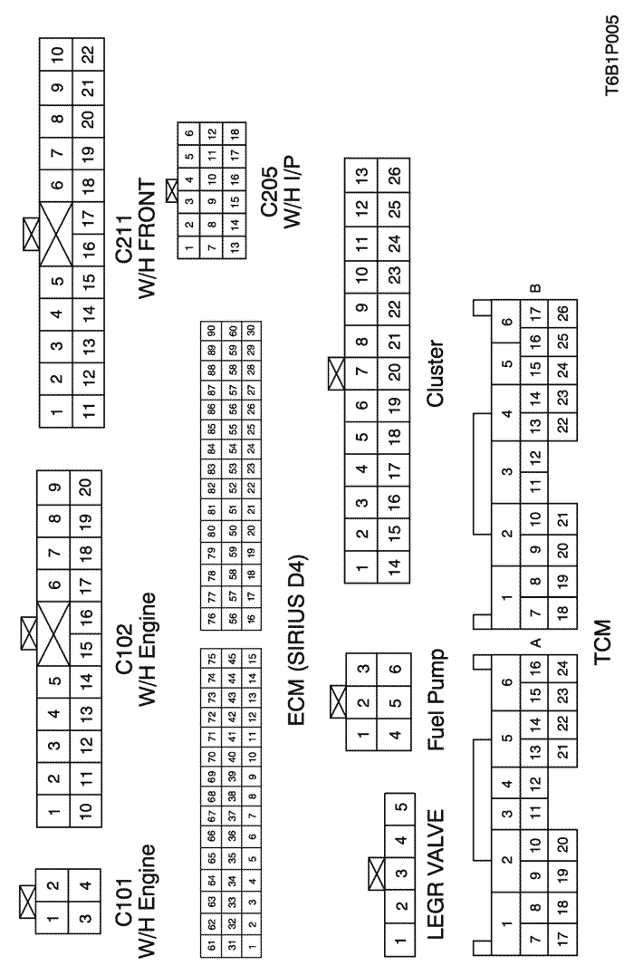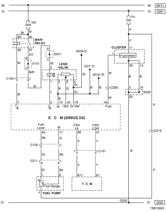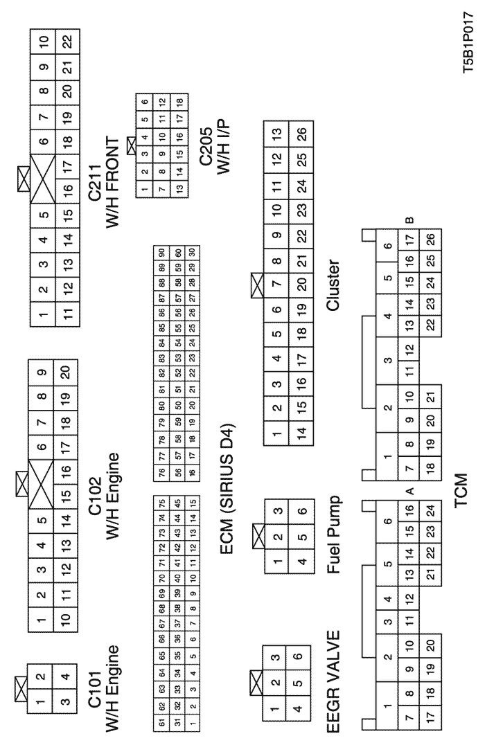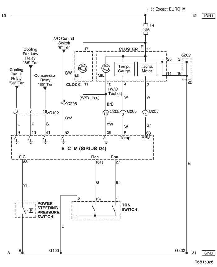 4) cluster, eegr valve, fuel pump & tcm circuit : except euro iv