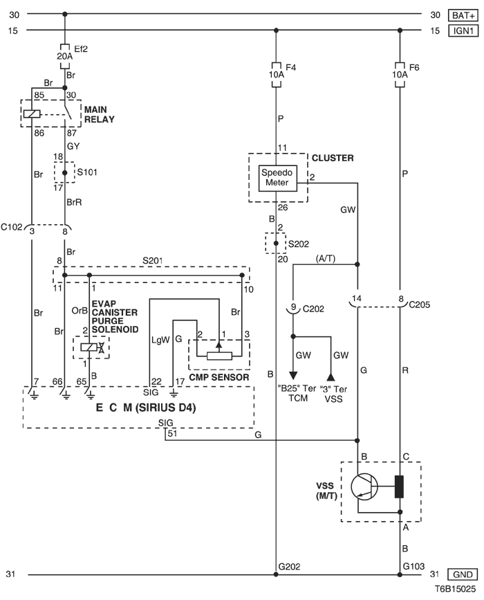 6) cmp sensor, evap canister purge solenoid, cluster & vss circuit
