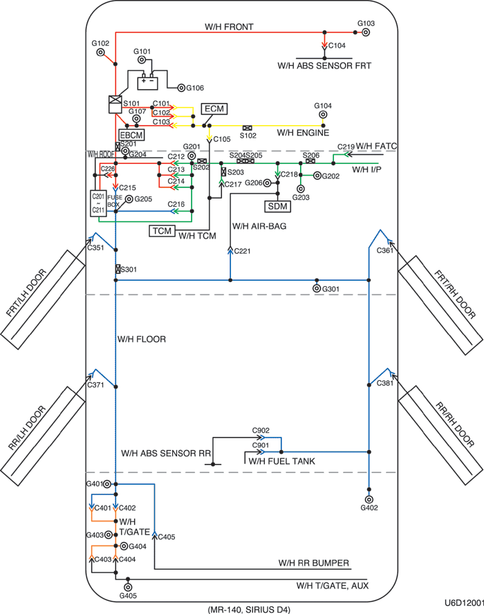 1) РАСПОЛОЖЕНИЕ ЖГУТОВ ПРОВОДОВ, СОЕДИНЕНИЙ С МАССОЙ И КОНТАКТНЫХ КОЛОДОК