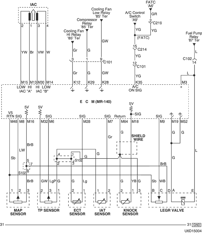 4) ЦЕПЬ ДАТЧИКА (РЕГУЛЯТОР ХОЛОСТОГО ХОДА, АБСОЛЮТНОЕ ДАВЛЕНИЕ В КОЛЛЕКТОРЕ, ПОЛОЖЕНИЯ ДРОССЕЛЬНОЙ ЗАСЛОНКИ, ТЕМПЕРАТУРА ОХЛАЖДАЮЩЕЙ ЖИДКОСТИ И ДЕТОНАЦИИ) И КЛАПАНА РЕЦИРКУЛЯЦИИ ОТРАБОТАВШИХ ГАЗОВ