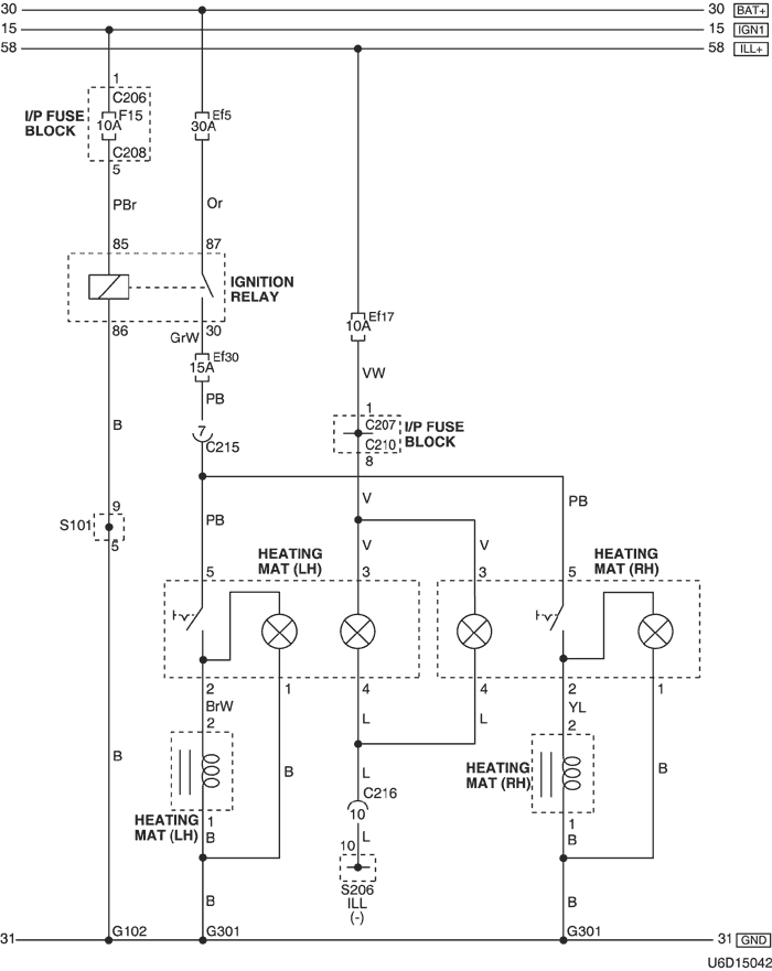 | С215 (контакт 16, белый) | Пол - передняя часть | Под блоком предохранителей на приборной панели |