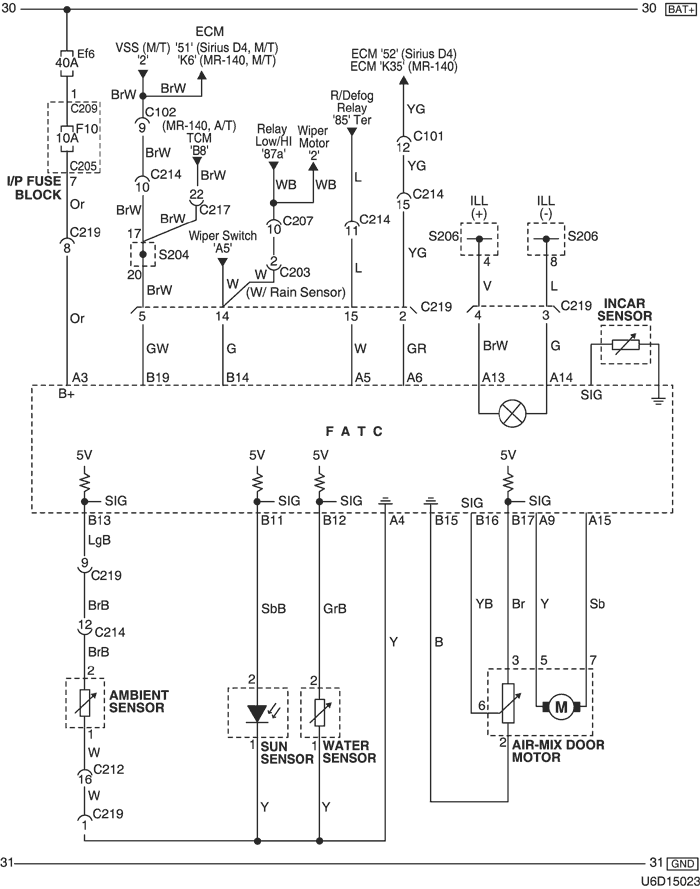 2) ЦЕПЬ ЭЛЕКТРОПРИВОДА ВОЗДУШНОЙ СМЕСИТЕЛЬНОЙ ЗАСЛОНКИ, КОМПР. КОНДИЦИОНЕРА И ДАТЧИКОВ (ТЕМПЕРАТУРЫ НАРУЖНОГО ВОЗДУХА, СОЛНЕЧНОГО ОСВЕЩЕНИЯ, ВЛАГИ И САЛОНА) : MR-140, SIRIUS D4