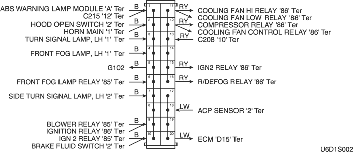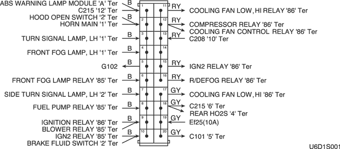 | S101 (бел.) | ПЕРЕДНЯЯ ЧАСТЬ | Внутренняя сторона блока предохранителей в моторном отсеке |