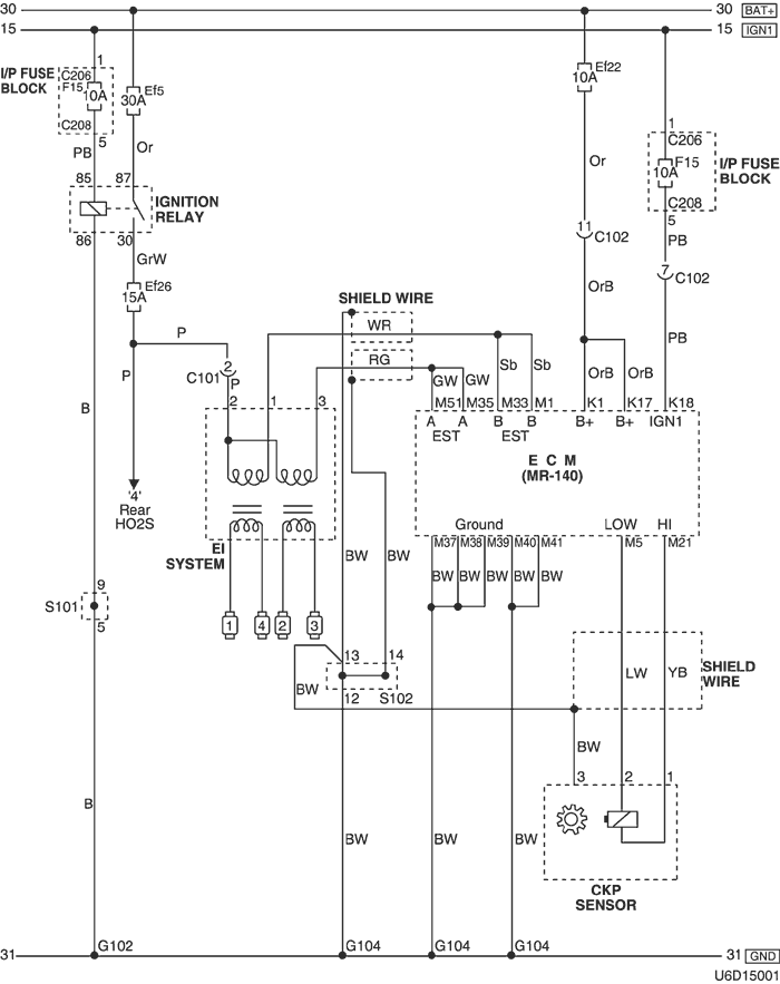 1) battery power supply, ground, ei system & ckp sensor circuit