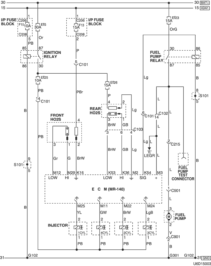 3) fuel pump, injector & o2 sensor circuit : euro iii