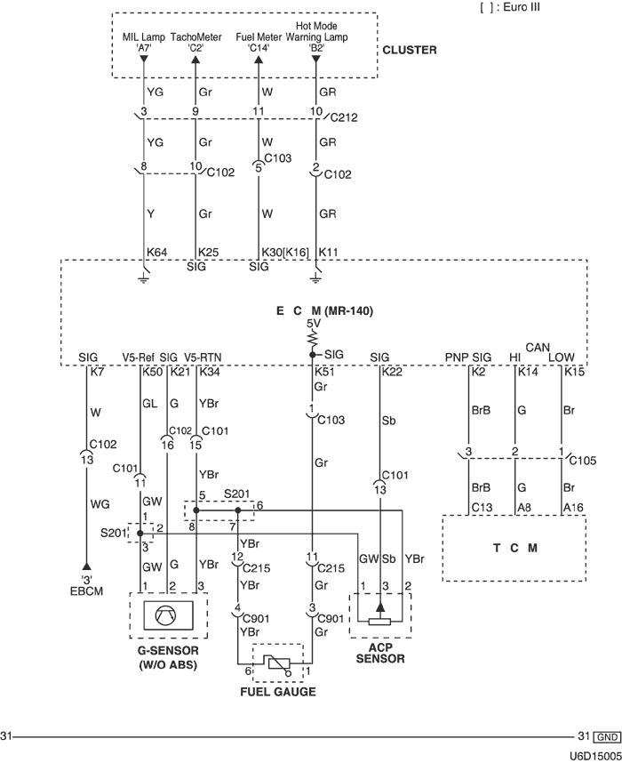 5) indicator (mil lamp, tachometer, fuel meter & hot mode warning lamp), g-sensor, acp sensor, fuel gauge & tcm circuit