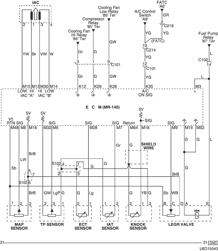 4) sensor (iac, map, tp, ect, iat & knock) & legr valve circuit