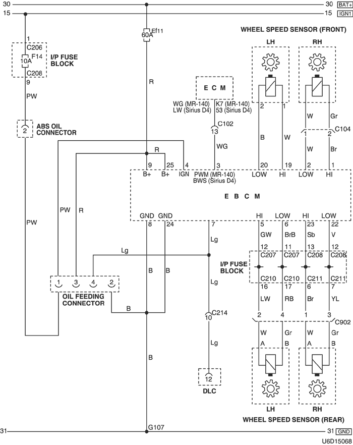 1) power supply & wheel speed sensor circuit