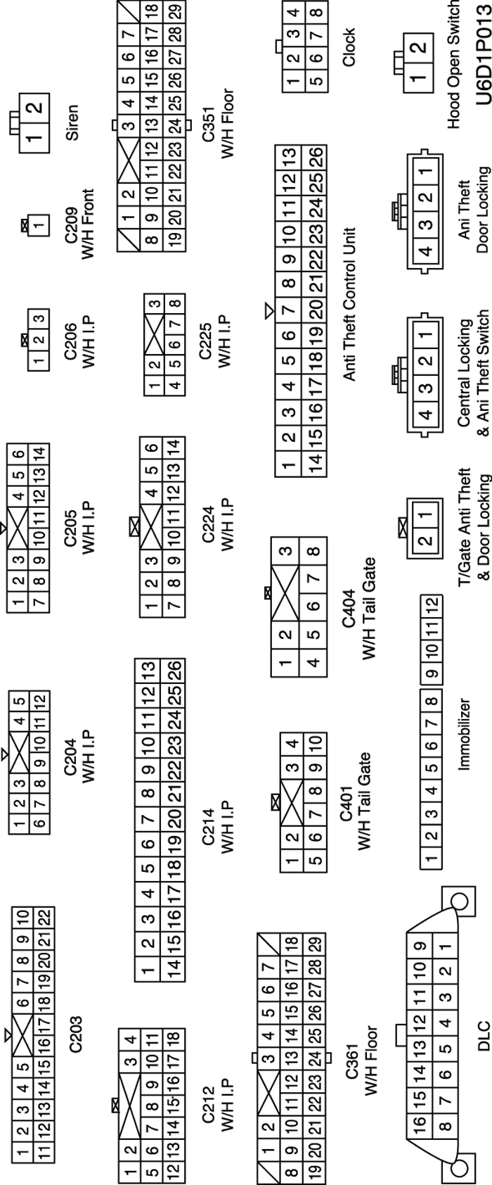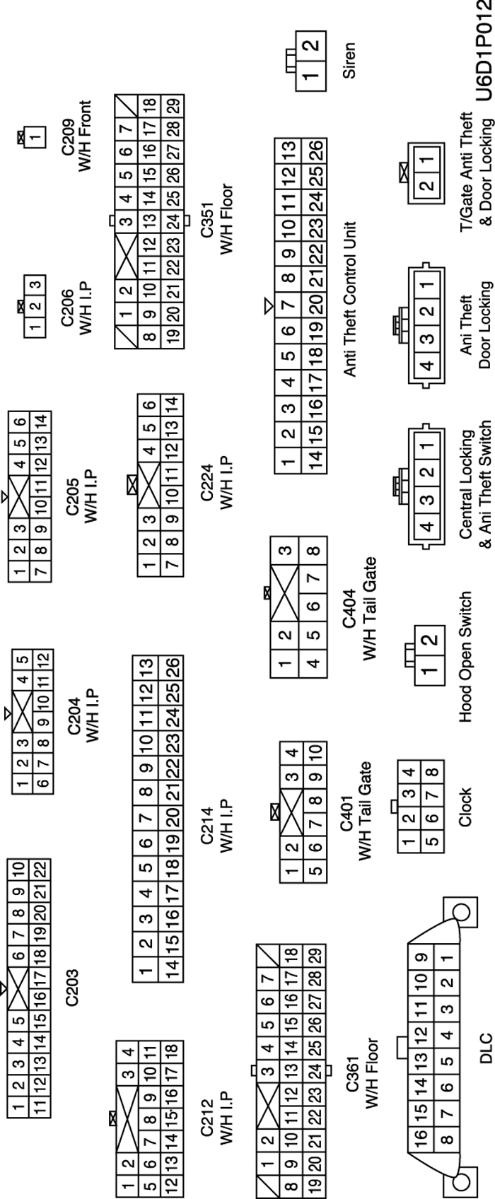 | C361 (29 Pin, White) | Floor – Driver Door | Inside Right 'A' Pillar |