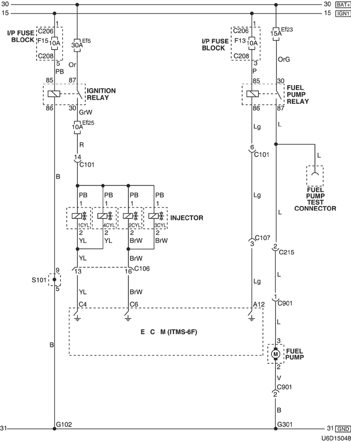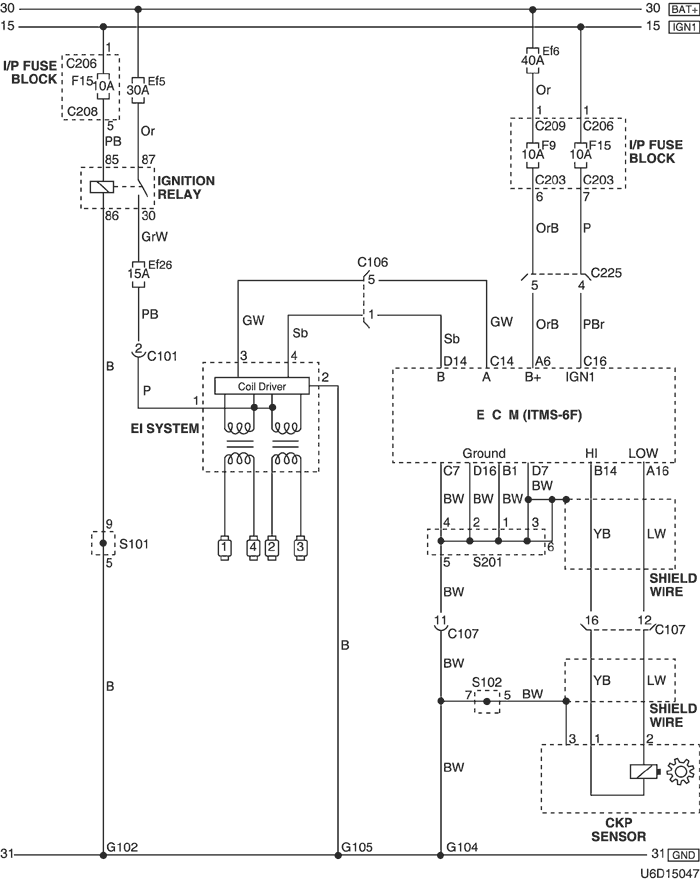 1) battery power supply, ground, ei system & ckp sensor circuit