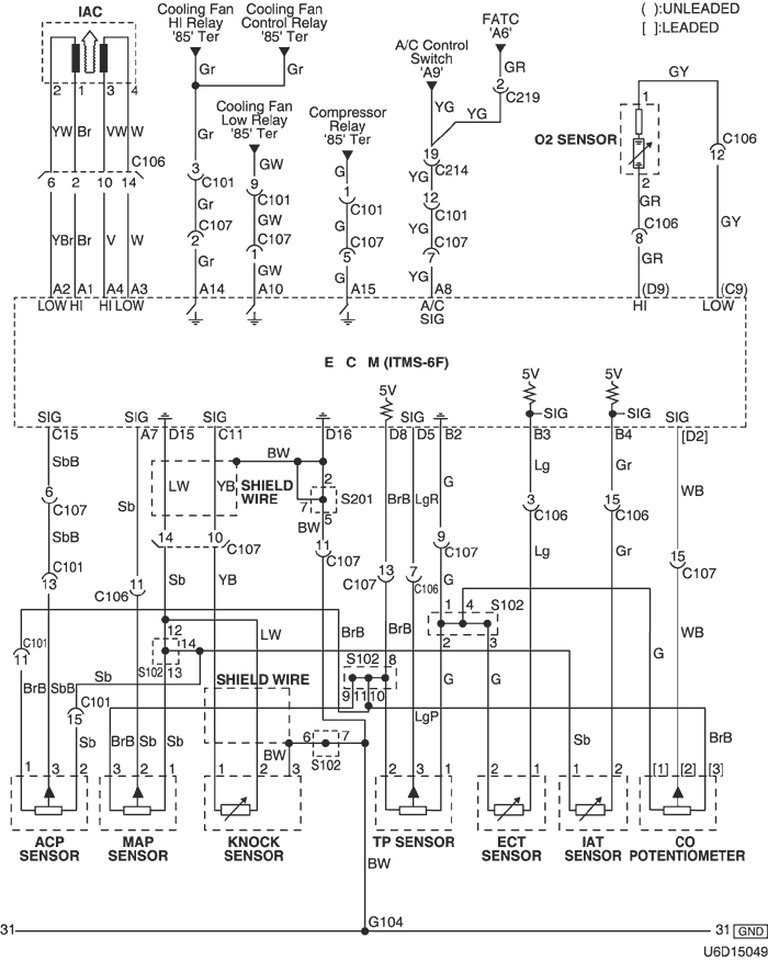 3) sensor (iac, acp, tp, ect, iat, co potentiometer & knock) circuit