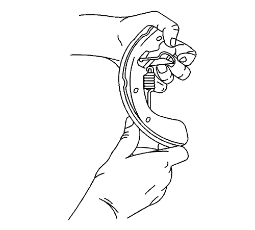 5. Отсоединить верхний конец пружины соединительного рычага ведущей колодки. Благодаря этому уменьшится натяжение верхней стяжной пружины.