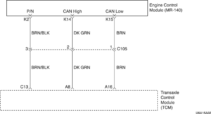 3. Измерить сопротивление между разъёмом 13 соединительного зажима коробки передач и разъёмом А9 соединительного зажима контроллера КПП.
