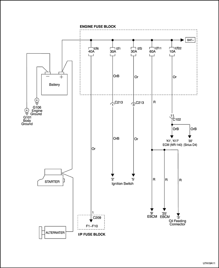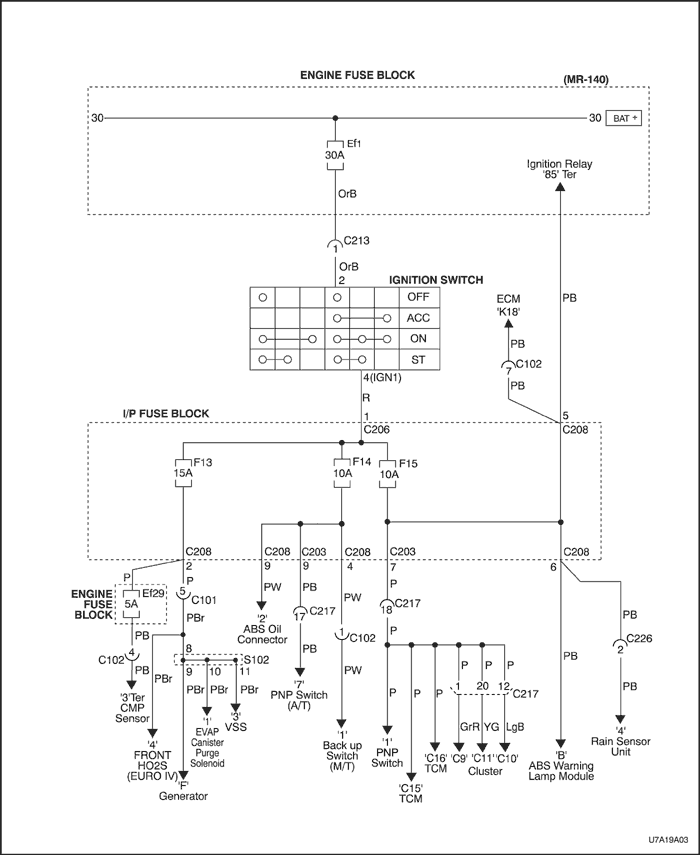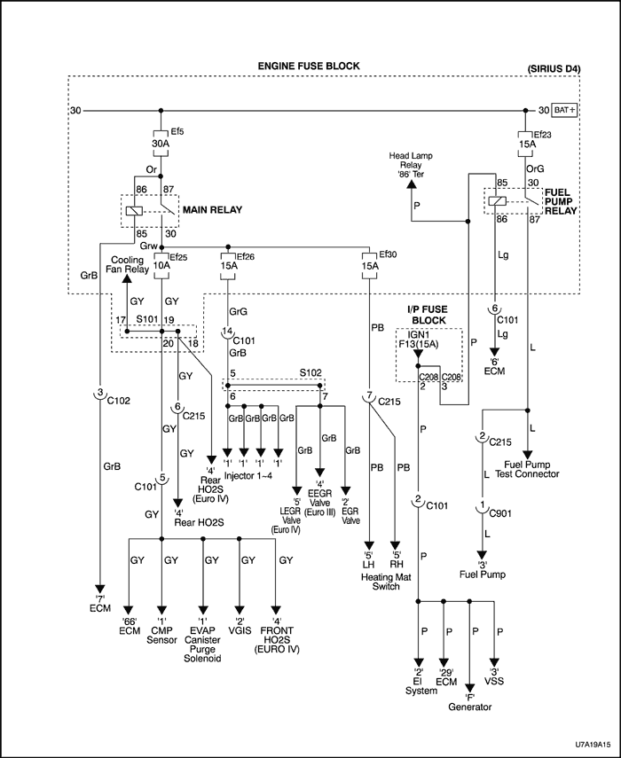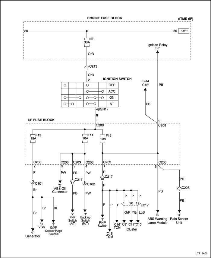 Генератор, датчик положения распределительного вала, клапан продувки адсорбера системы улавливания паров бензина, датчик скорости автомобиля, электронный блок управления, передний нагреваемый кислородный датчик