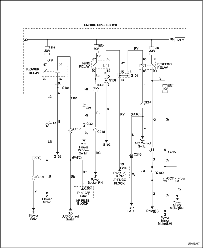 РАСПОЛОЖЕНИЕ БЛОКА ПРЕДОХРАНИТЕЛЕЙ (ДВИГАТЕЛЬ)