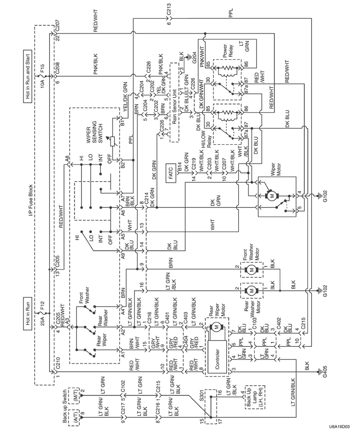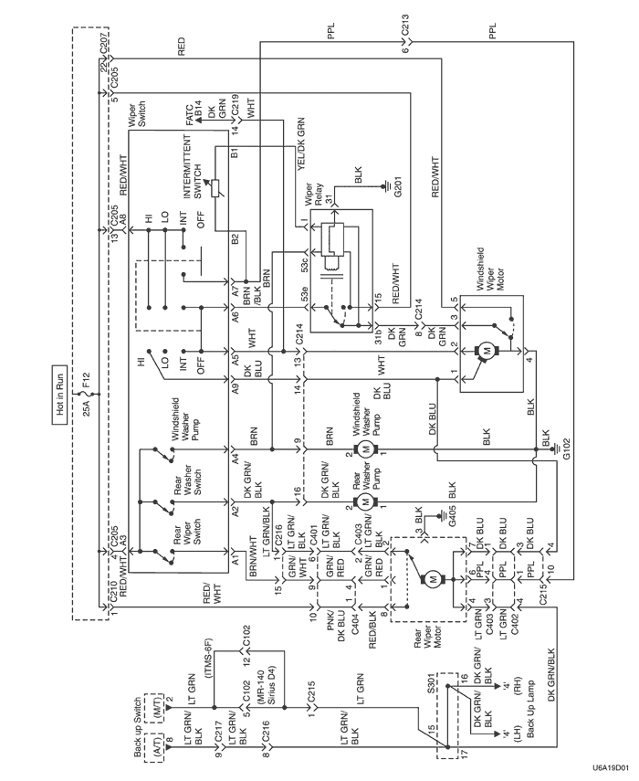 2. Проверить напряжение на выводе a6 разъема выключателя стеклоочистителей.