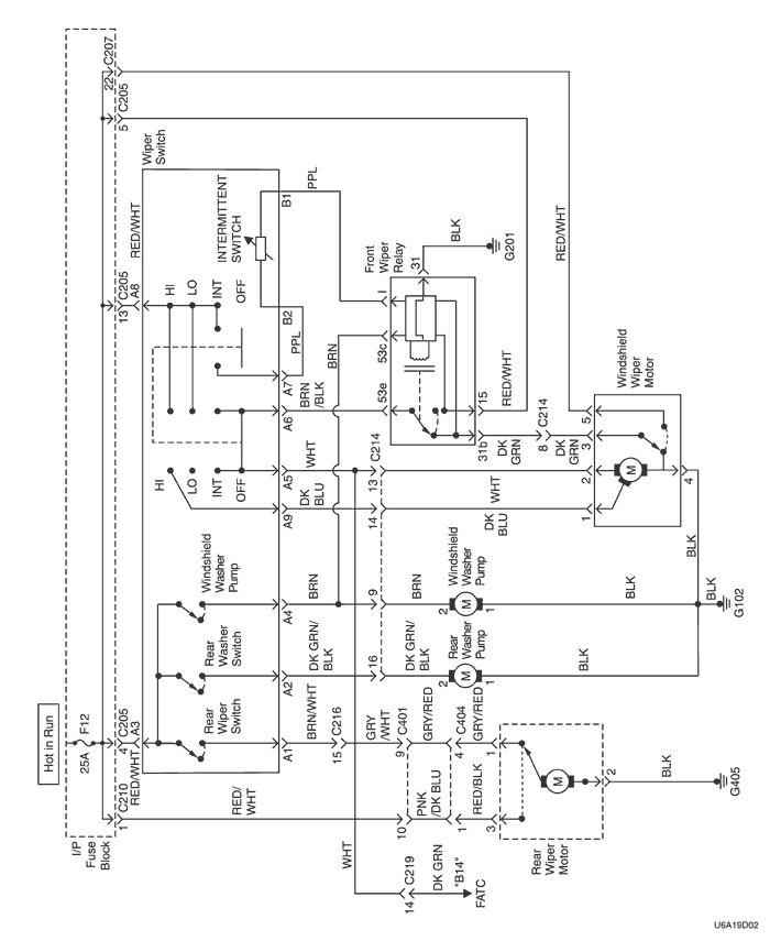 Устранить разрыв цепи между выводом А5 разъема выключателя стеклоочистителей и выводом 2 разъема электродвигателя стеклоочистителей.