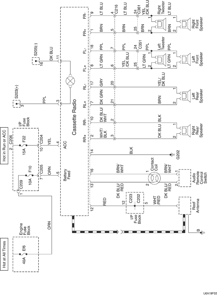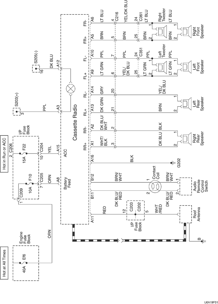 С помощью омметра проверить цепь массы на выводе радио 14 (a16 с системой rds).