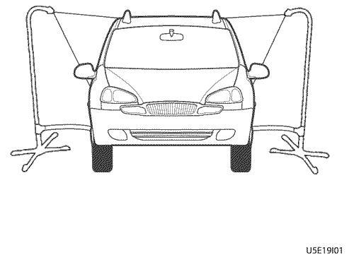 2. Если местное давление воды не достигает необходимого значения в 155 кПа (22,5 фунта на кв. дюйм), следует переместить оба стенда ближе к автомобилю, чтобы струи воды перекрывали друг друга.