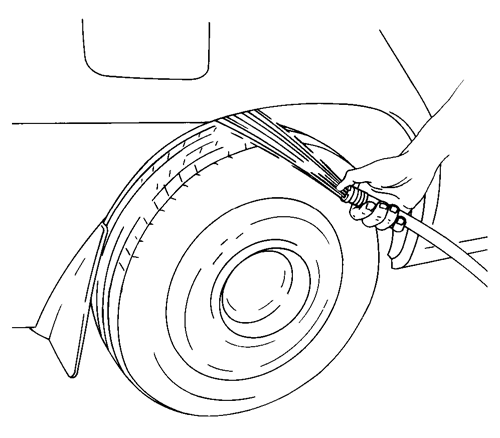 2. Подать воздух изнутри автомобиля. Давление воздуха не должно превышать 205 кПа (29,7 фунтов на кв. дюйм).