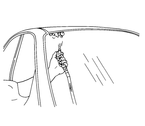 2. Во время распыления воды на зону протекания следует аккуратно нажать на стекло, выдавливая его наружу, чтобы определить размер протечки.