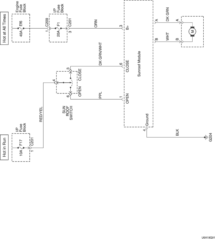 Устранить разрыв цепи между предохранителем f17 и переключателем люка в крыше.