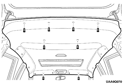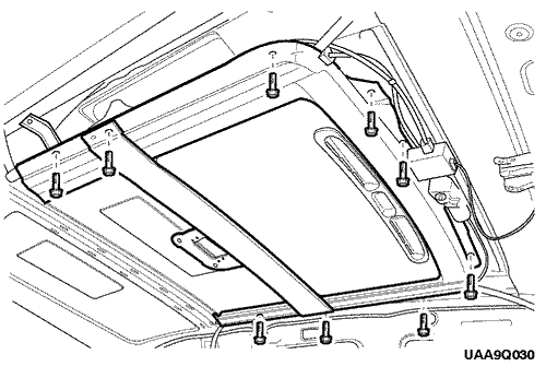 1. Снять обивку потолка салона. См. "Фасонная обивка потолка салона" в этом разделе.