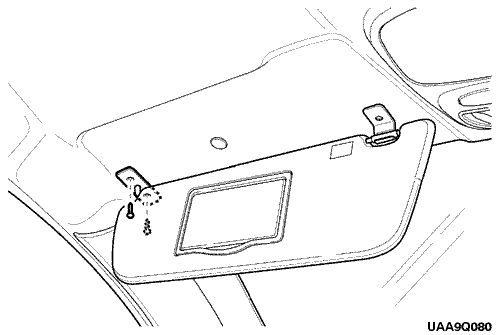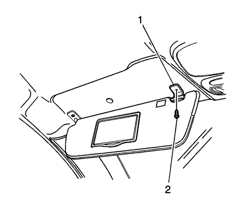 2. Снять солнцезащитные козырьки и держатели солнцезащитных козырьков с обивки потолка салона. См. "Солнцезащитные козырьки" в этом разделе.