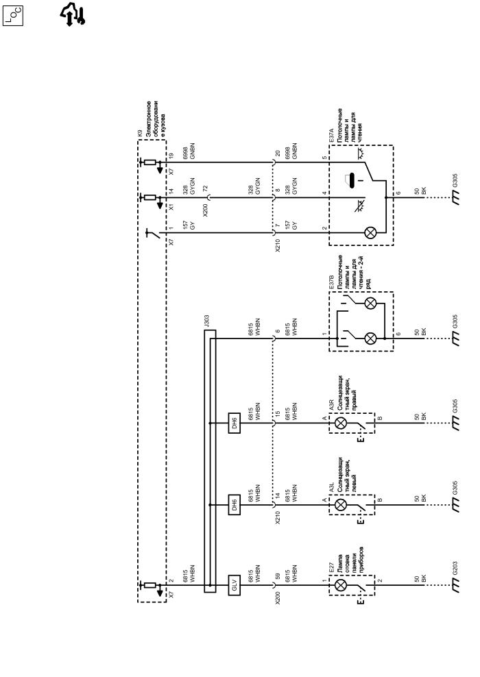 | e27 | Лампа отсека панели приборов | k9 | Электронное оборудование кузова |