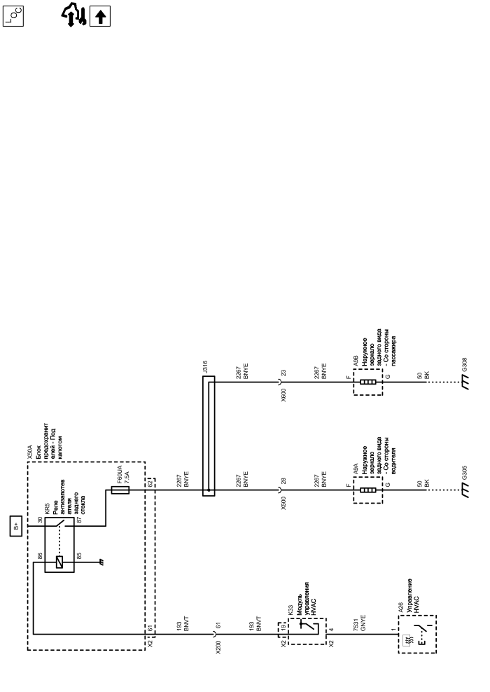 | k33 (x2) | Модуль управления hvac x2 | x500 | Жгут проводов кузова и жгут проводов двери водителя |