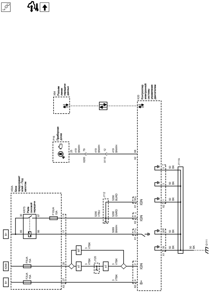 | j111a | Соединение с виртуальной "землей" | k20 (x2) | Контроллер электронной системы управления двигателем x2 |