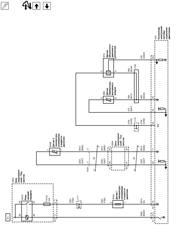 | b74 | Датчик абсолютного давления в коллекторе | x50a | Блок предохранителей - Под капотом |