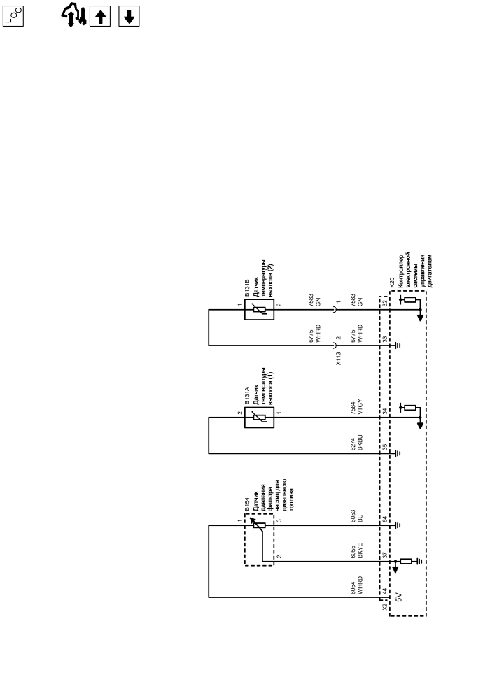 | k20 (x2) | Контроллер электронной системы управления двигателем x2 | x113 | Жгут проводов двигателя и жгут проводов датчика температуры выхлопных газов |